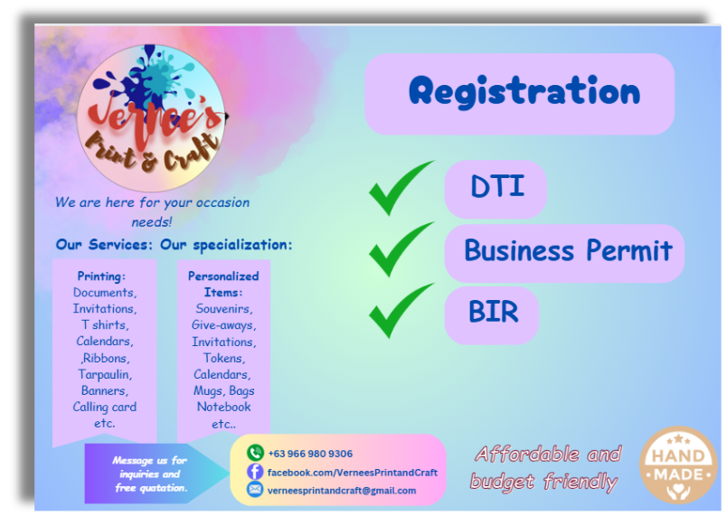 "Vernee's Print and Craft: Where a Touch of Magic Creates Satisfying Impressions."